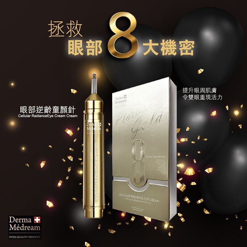 取適量眼部逆齡童顏針,以指尖取適量眼霜先暖和,幫助提升產品吸收。從內眼角慢慢按壓至眼尾至太陽穴。