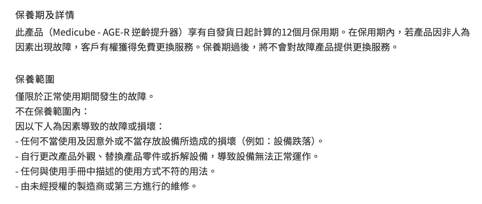 保固範圍:非人為因素而造成的機器零件故障 , 經由職員檢查後,以舊換新)