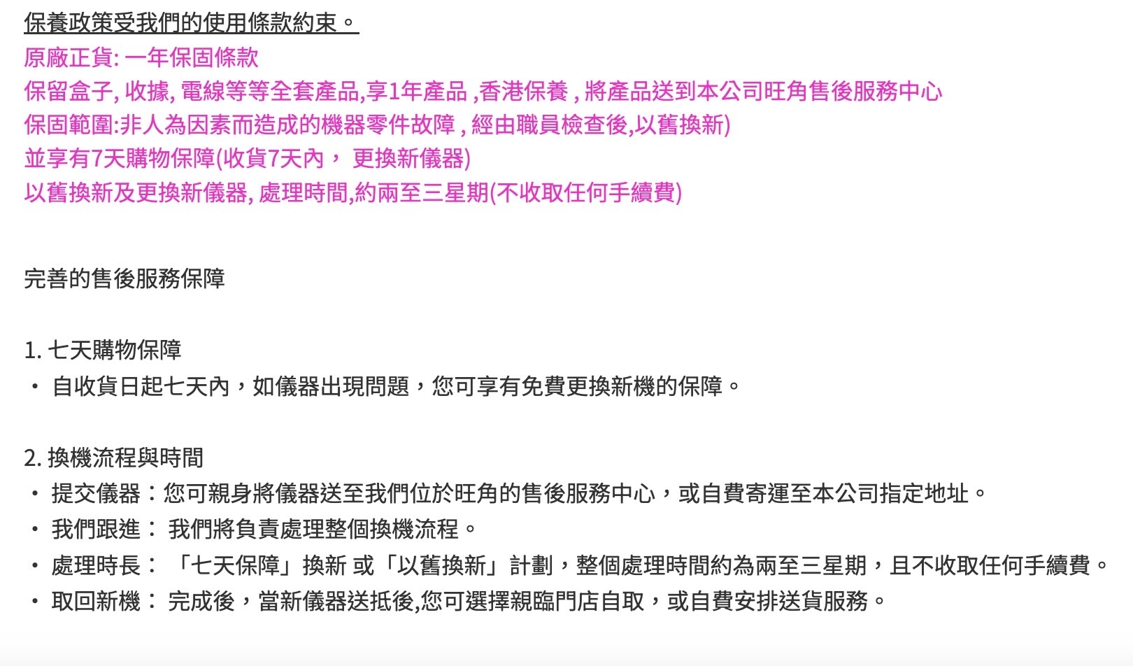 保留盒子, 收據, 電線等等全套產品,享1年產品 ,香港保養 , 將產品送到本公司旺角售後服務中心