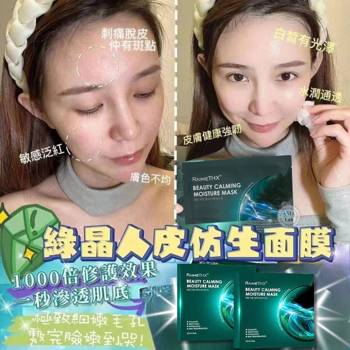 一片綠膜=敷了20片普保通濕面膜超級補濕